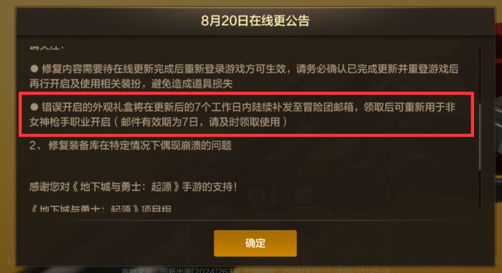 另外就是在20号更新之后一些玩家把之前补偿送的天空礼盒给女神枪手使用,结果还没用就直接消失了。对于这张情况官方也是注意到了,表示会补发这绝版天三的,并且会直接发邮件寄给大家这绝版天三。当然了,也只有那些天空礼盒消失了的玩家才能领取到,之前已经开了补偿礼盒的玩家是没有的。而且即使是补发了这个绝版天三,但女神枪手依然是不能用的。