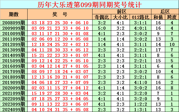 在历史同期开奖中,后区号码和值奇偶为8:9,基本持平,本期看好奇号和值出现,参考和值23。