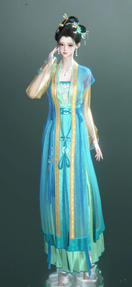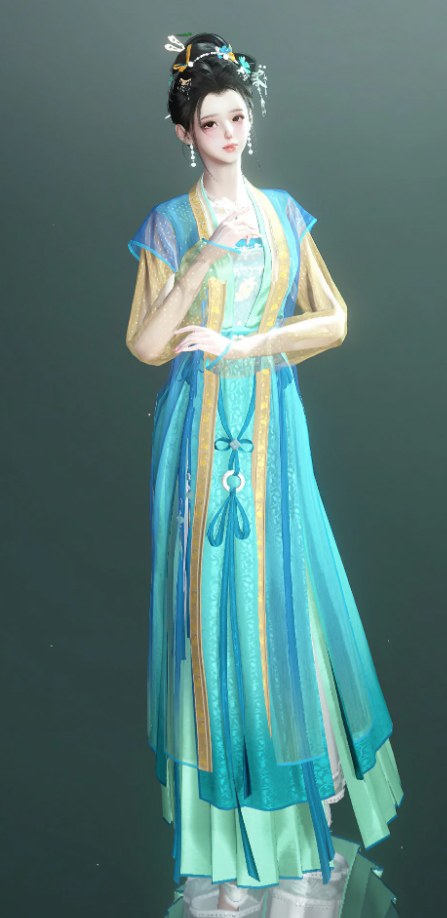 还有以《千里江山图》为基础色的搭配,这青绿色,不似那般张扬浓烈的色彩,有一种内敛而高贵的气质,像是汴京城里养在深闺的高贵小姐。