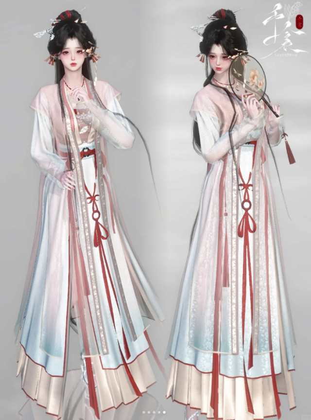有宋制禅意风,红粉白三色搭配在一起,婉约动人~