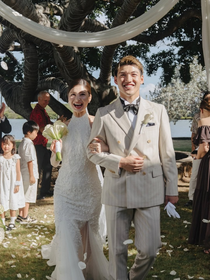 直播吧08月14日讯日本国脚堂安律的妻子明松美玖在社媒晒出一组婚礼照片。